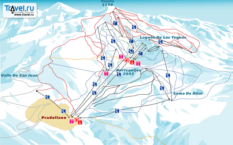 Сьерра Невада – самый южный горнолыжный курорт Европы. Здесь проводился чемпионат мира именно потому, что планировка и качество всех 45 трасс отличное, а также есть развитая инфраструктура городка Прадольяно. Не зря здесь катается сам король Испании. Перепад высот на склонах более 1100м с начальной точкой катания 3300 метров, а это означает, что даже профессиональным лыжникам не придется скучать. Сама станция расположена на высоте 2100 над уровнем моря, сезон длится с начала ноября по начало апреля, отличный снежный покров на протяжении всего сезона обеспечивают 278 снежных пушек. С самых высоких точек горы Veleta в ясную погоду можно увидеть не только воды Средиземного моря, но даже побережье Морокко, а это уже Африка. Отдых на этом поистине уникально расположенном горнолыжном курорте открывает дополнительные возможности посетить сказочную Гранаду, удивительную Севилью, гордость всей Испании Кордову и даже сам Мадрид.