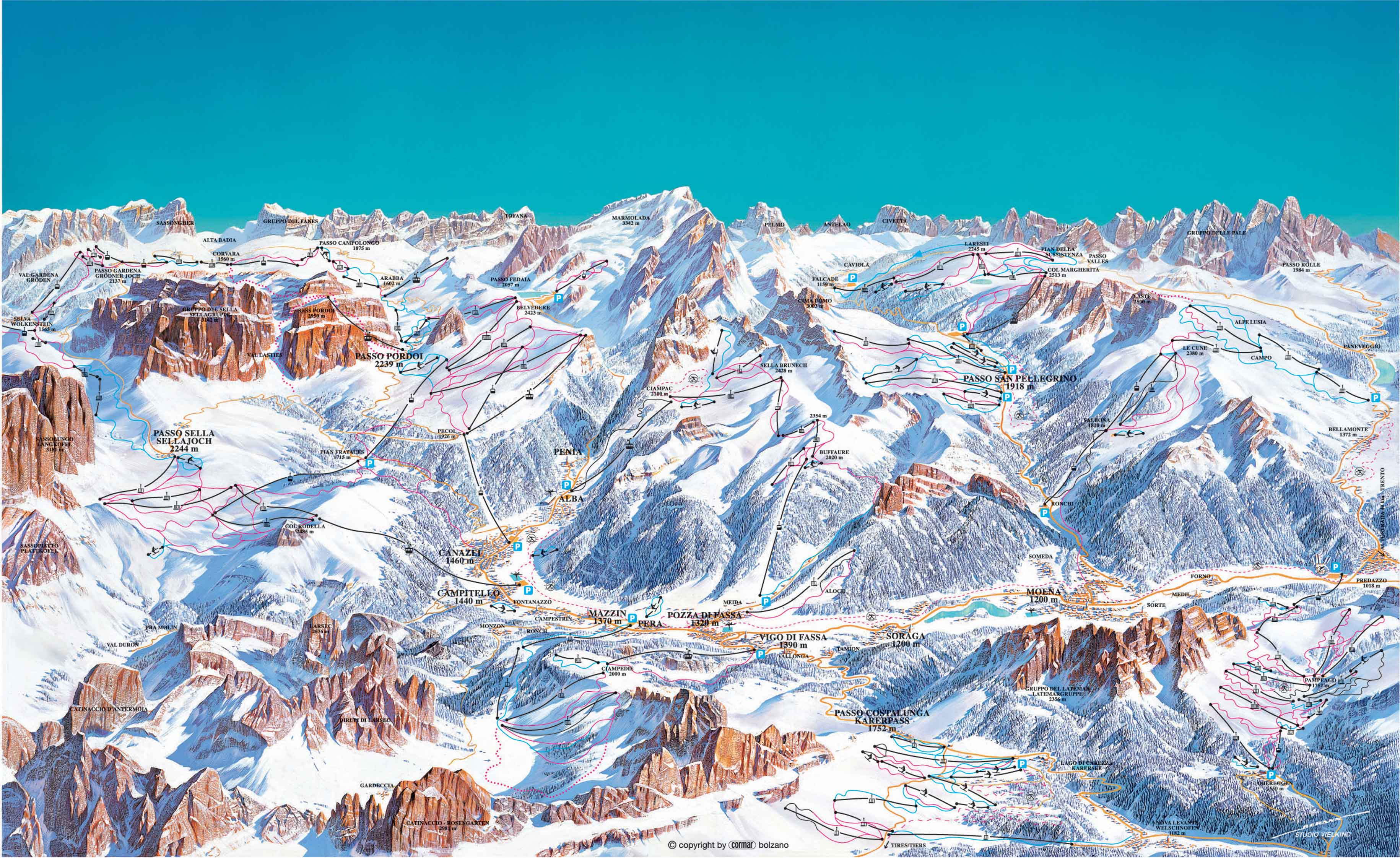 В долине Валь-ди-Фасса можно выделить три основные зоны катания.